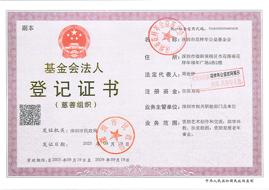 深圳市花樣年公益基金會(huì)是由花樣年集團(tuán)發(fā)起,于2013年3月在深圳市民政局注冊(cè)成立的非公募公益基金會(huì),是花樣年集團(tuán)踐行戰(zhàn)略性企業(yè)社會(huì)責(zé)任的載體。公益基金會(huì)以“樂享公益”為核心理念,以“促進(jìn)公益事業(yè)發(fā)展,構(gòu)筑有趣、有味、有料的幸福人生!”為宗旨,共有藝術(shù)公益、教育公益、養(yǎng)老公益三大公益品牌項(xiàng)目。