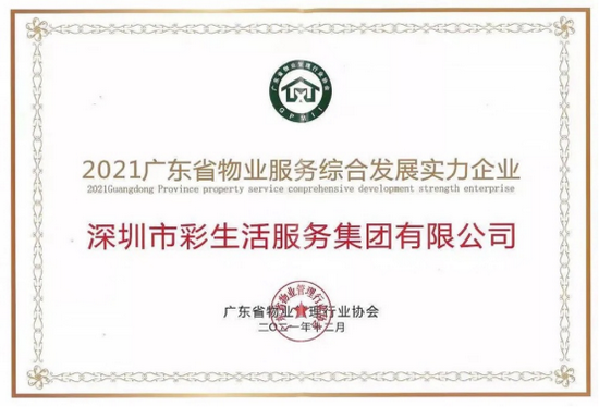 2021年12月15日,在廣東省物業(yè)管理行業(yè)協(xié)會“第五屆第五次會員(代表)大會暨理事(監(jiān)事)會會議”及“2021廣東省物業(yè)服務企業(yè)綜合發(fā)展研究成果發(fā)布會”上,彩生活憑借綜合實力和業(yè)界口碑,榮獲“2021廣東省物業(yè)服務綜合發(fā)展實力企業(yè)”、“2021年度廣東省物業(yè)管理行業(yè)協(xié)會優(yōu)秀會員”、“2021大灣區(qū)物業(yè)服務品牌企業(yè)”三項獎項。